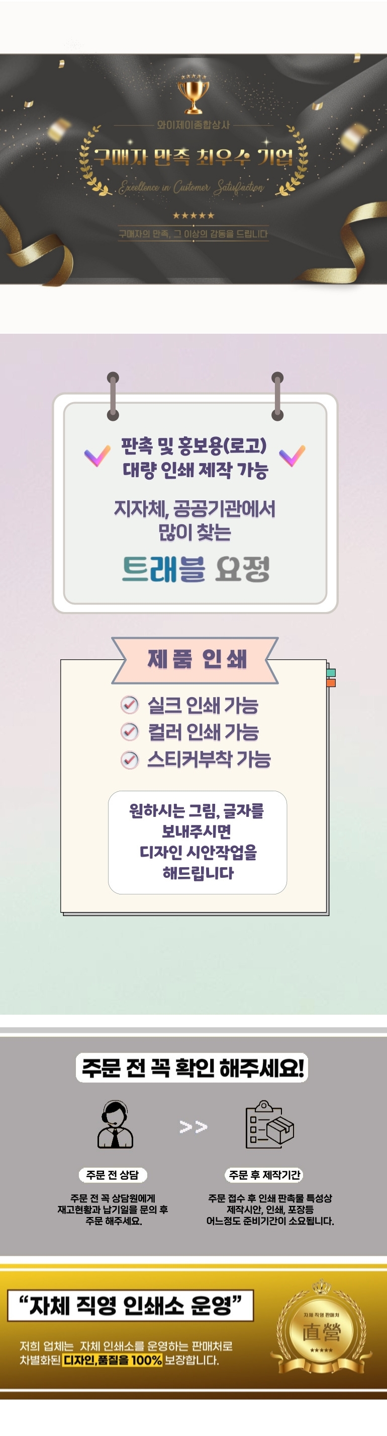 - Àμ⸦ ÇϽô °æ¿ì, ´ç»ç¿¡¼´Â °í°´´ÔÀÌ º¸³»ÁֽŠ¿ø°í ¹× µµ¾ÈÀ» ±âº»À¸·Î ÇÏ¿© Çʸ§À» Á¦ÀÛÇϰí, Á¤È®¼ºÀ» ±âÇϱâ À§ÇØ °í°´´Ô°ú ÀçÈ®ÀÎ ÈÄ ½ÇÁ¦ Àμâ ÀÛ¾÷À» ÇÕ´Ï´Ù. (ÃÖÁ¾ µðÀÚÀÎ ½Ã¾ÈÀÇ À߸øµÈ È®ÀÎÀº Ã¥ÀÓÀÌ ¼ö¹ÝµÇ¹Ç·Î Á¤È®ÇÏ°Ô È®ÀÎÇÏ¿© Áֽñ⠹ٶø´Ï´Ù.)