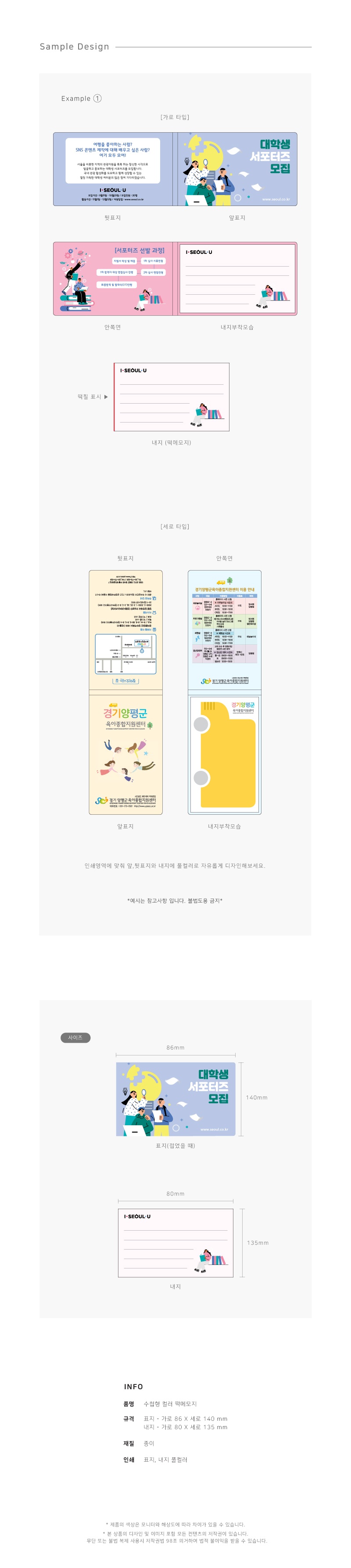 ±¸¼º Ç¥Áö,³»Áö(50,100¸Å Áß ÅÃ1) Á¦Ç°±Ô°Ý Ç¥Áö 86*140 / ³»Áö 80*135mm (¶±¸Þ¸ðÁö)