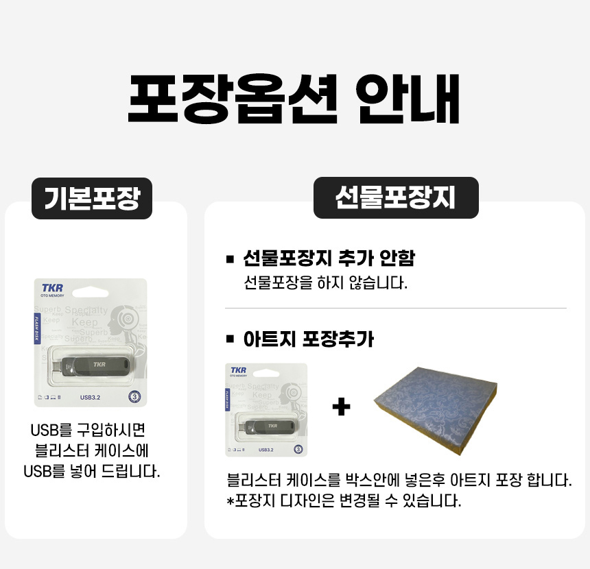 - ÆÐŰÁö, ¼±¹° »óÀÚ µî ¿É¼ÇÀ» Ãß°¡ÇÏ¿© ¹è¼Û ÈÄ ¹ÝǰµÈ »óǰÀÇ ¼±¹°»óÀÚ°¡ ÈѼյǾú°Å³ª µ¿ºÀÇÏÁö ¾ÊÀº °æ¿ì, ÇØ´ç ºñ¿ë °øÁ¦ ÈÄ È¯±ÞµÉ ¼ö ÀÖ½À´Ï´Ù.