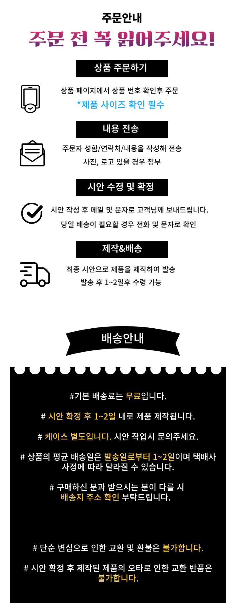 - ÁÖ¹® ½Åû ÈÄ ÇØ´ç ¹°Ç° ´ë±ÝÀ» ¼Û±ÝÇØ ÁÖ½Ã°í ¼Û±Ý È®ÀÎÀº ¹Ýµå½Ã À¯¼±À¸·Î È®ÀÎÇϽñ⠹ٶø´Ï´Ù. (ÁÖ¹® ÈÄ ¹ÌÀÔ±Ý, ¶Ç´Â ÀüÈ»ó ¼·Î È®ÀÎÀÌ ¾ÈµÉ °æ¿ì Á¦ÀÛÀÌ Áö¿¬µÇ´Â °æ¿ìµµ ÀÖÀ½)